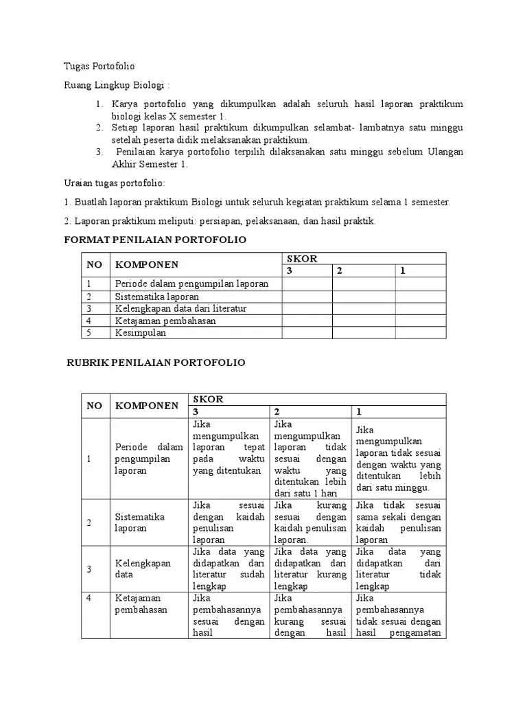 Tugas pembuatan portofolio biologi aturan pembuatan portofolio biologi : 3program studi pendidikan biologi universitas majalengka. 2004 portofolio diterapkan pada mahasiswa jurusan biologi fmipa um untuk matakuliah bahasa inggris profesi dan metodologi penelitian pendidikan. Contoh penilaian portofolio satuanpendidikan : Guru sd smp sma contoh tugas portofolio kls 4.