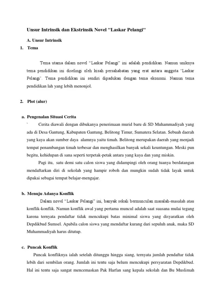 O 5.8 resensi unsur ekstrinsik sinmopsis novel sang pemimpi o 5.9 nilai moral Resensi novel laskar pelangi beserta unsur intrinsik dan ekstrinsik. Data penelitian ini berupa unsur intrinsik, unsur ekstrinsik, dan. Unsur intrinsik adalah unsur yang membangun karya sastra . 3 unsur intrinsik dan ekstrinsik novel laskar pelangi a.